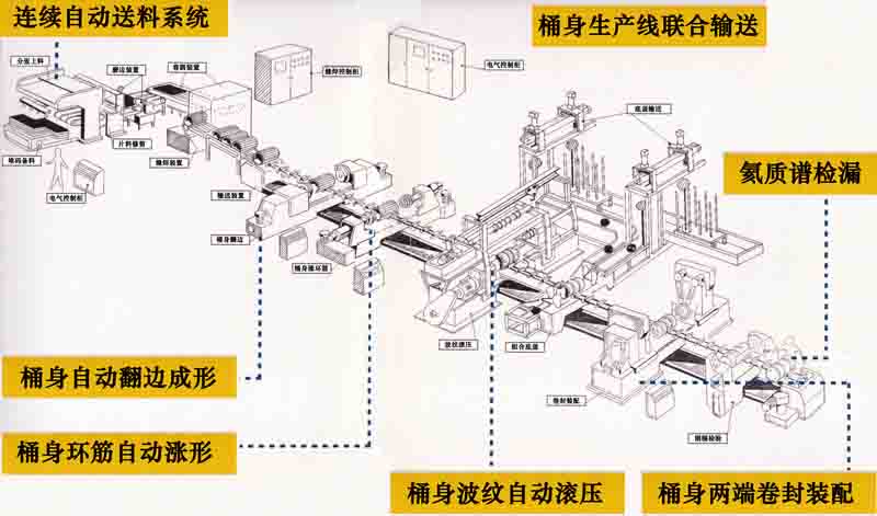 制桶機(jī)械是指能完成全部或部分鋼桶產(chǎn)品的的生產(chǎn)機(jī)械。生產(chǎn)過程包括開卷下料、底蓋沖壓、封閉器壓合、縫焊、桶身成形、卷邊封口、清洗磷化、噴漆、涂層干燥等多個(gè)工序,以及與其相關(guān)的前后工序,譬如預(yù)卷注膠、檢驗(yàn)、標(biāo)志印刷和堆碼等操作。此外,制桶還包括鋼桶稱重或在鋼桶上蓋印、貼標(biāo)等工序。使用制桶機(jī)械可提高生產(chǎn)效率,降低勞動(dòng)強(qiáng)度,適應(yīng)大規(guī)模生產(chǎn)的需要,并滿足清潔衛(wèi)生的要求。因此選擇一款優(yōu)質(zhì)的、適合自己使用的制桶機(jī)械就顯得極其重要。